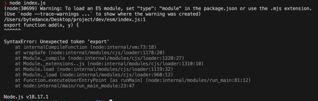 同时,许多转译器(例如 TypeScript 编译器)仍然配置为生成 CJS 代码作为其最终输出。这些转译器的用户使用 ESM 语法编写代码,但他们不一定知道他们的代码最终由 Node.js 作为 CJS 运行。当他们的代码使用真正的 ESM 第三方模块(无法 require)时,他们会看到一个 ERR_REQUIRE_ESM 。这可能会非常令人困惑,因为他们可能假设他们的代码是作为真正的 ESM 运行的。