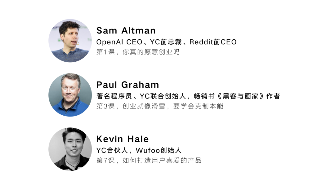 Open AI 带火了 Sam Altman 此前在斯坦福商学院的创业课程《How to Start a Startup》,课程录制彼时 Sam 正在担任 YC(著名投资公司,初创公司孵化器)总裁。该课程邀请演讲的嘉宾也非常重量级,包括:YC、网景公司、Paypal、Stripe 、Airbnb、Twitch (没错就是那个在前阵子 Open AI「政变」中曾当上几日 CEO 的那位 :-D)创始人。
